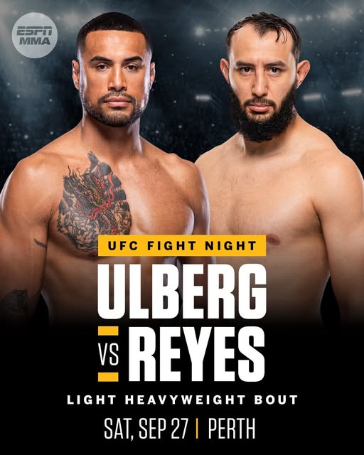 Sin embargo, Ahora clasificado como el contendiente número 8 en la categoría de peso, Reyes buscará seguir su tendencia ascendente contra Ulberg, clasificado número 3.
